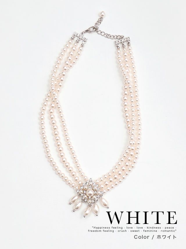 上品な華やかさをプラス♪ ビジューリボン付きパール2連ロングネックレス [Retica/レティカ]