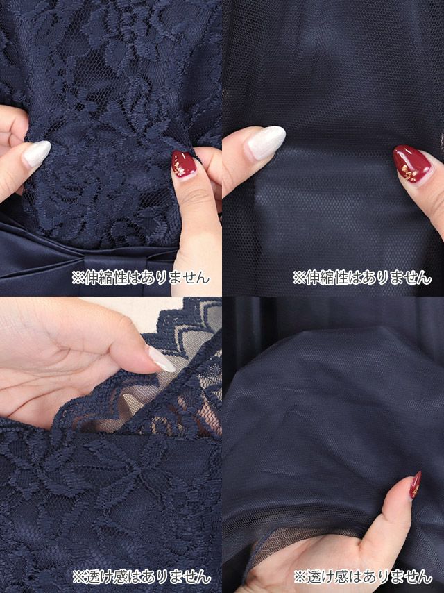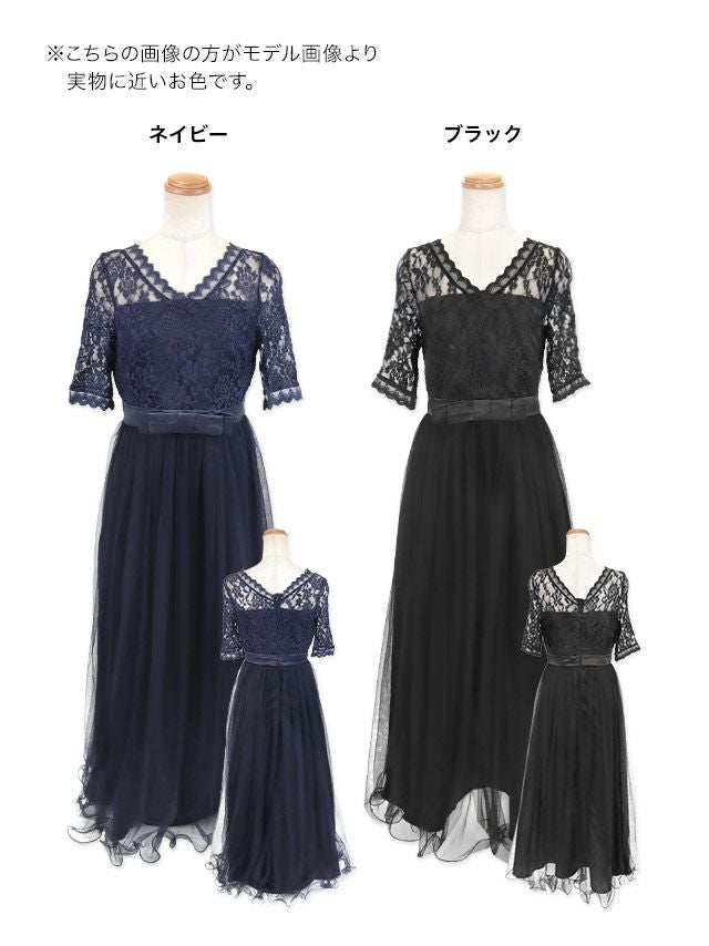 ウエストリボンチュールロングスカートレース5部袖結婚式パーティードレスのカラーバリエーション画像