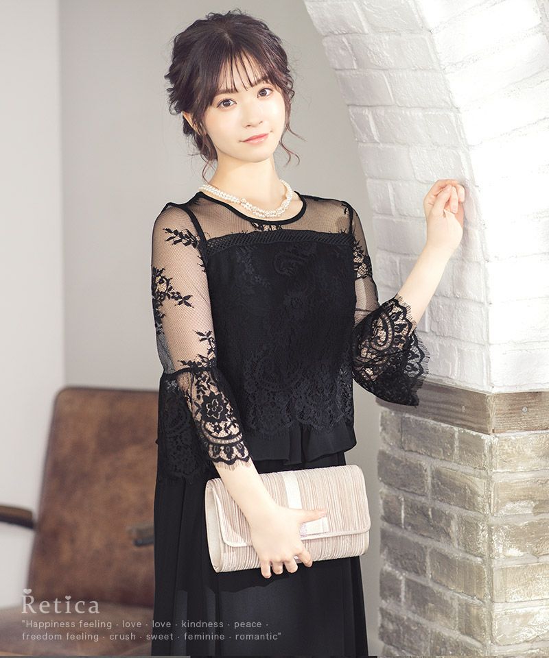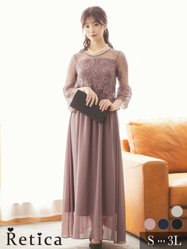 シフォンロングスカート七分袖結婚式パーティードレス [Retica/レティカ]
