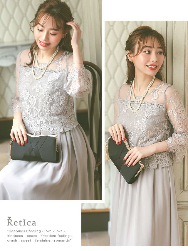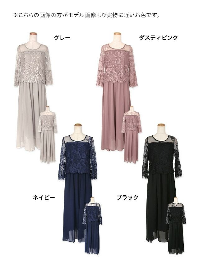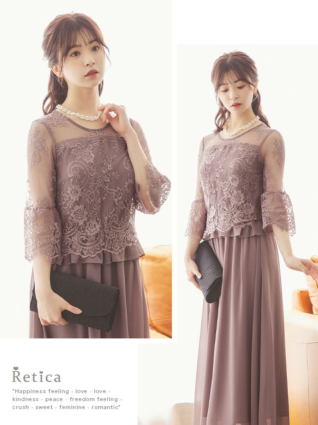 4. フラワーチュールレース七分袖ロングスカート結婚式パーティードレス [Retica/レティカ]