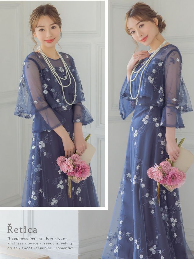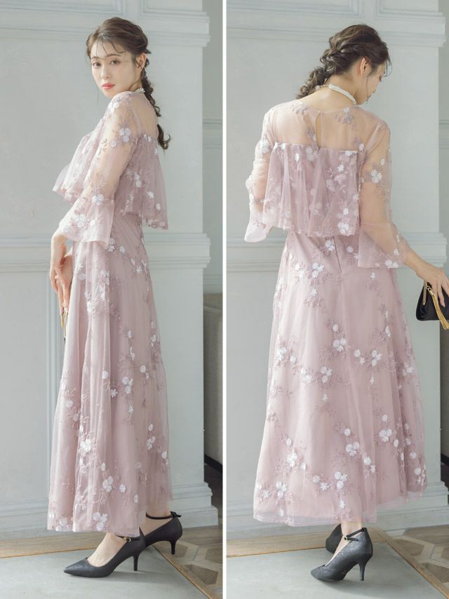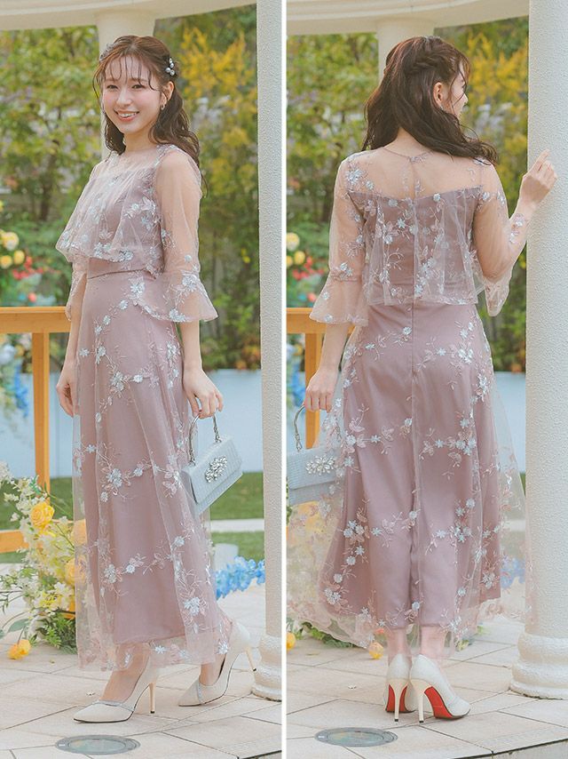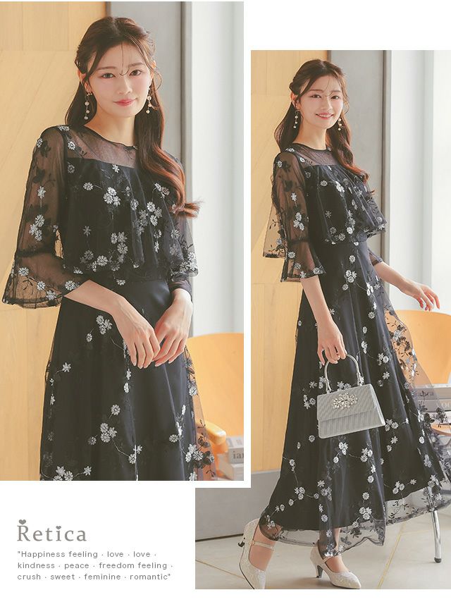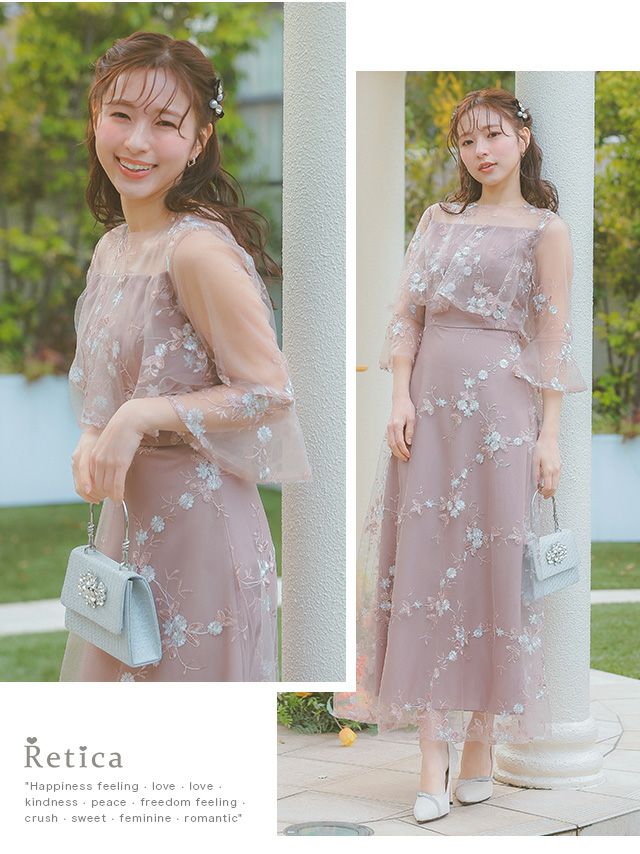 女性らしさを醸し出す繊細なフラワー刺繍で