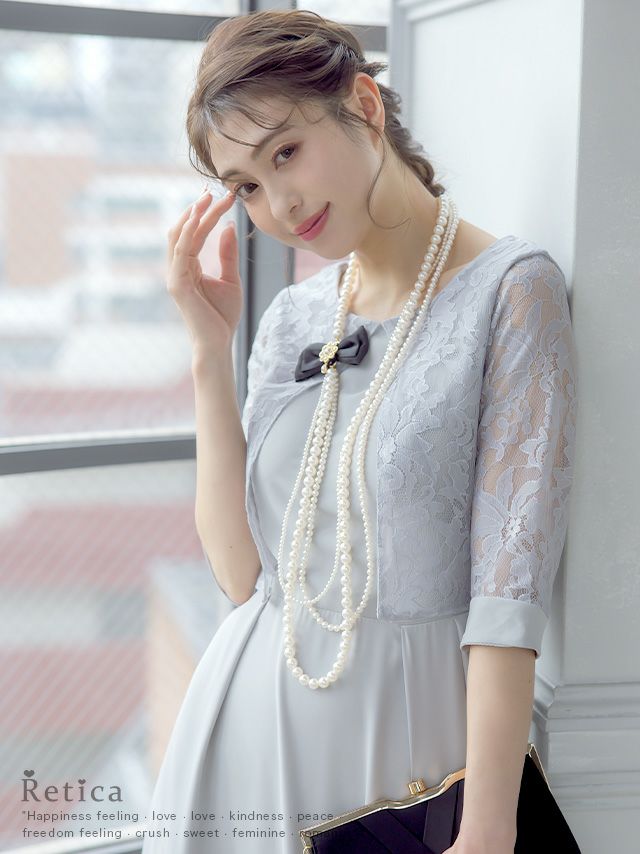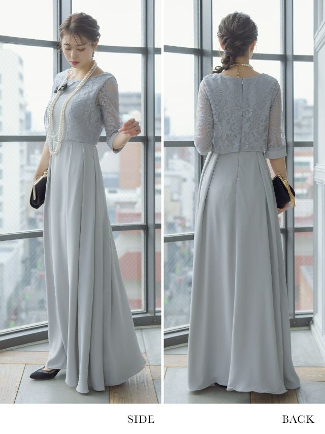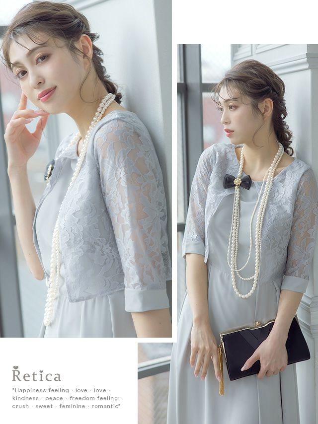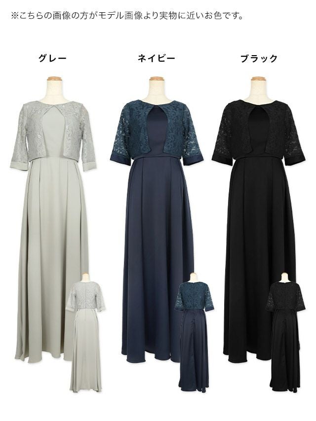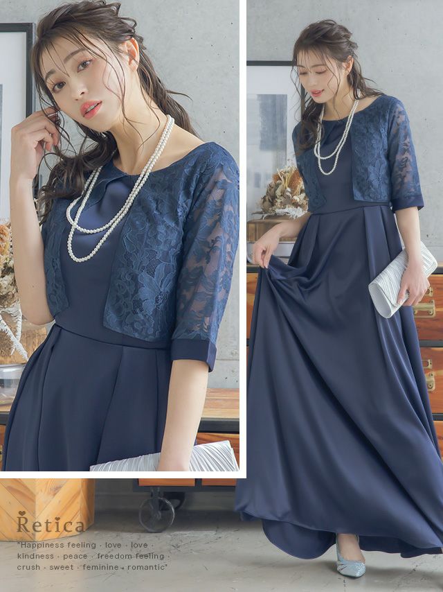 レースボレロ風デザイン五分袖ロングスカート結婚式パーティードレス [Retica/レティカ]