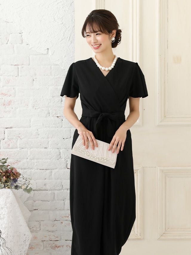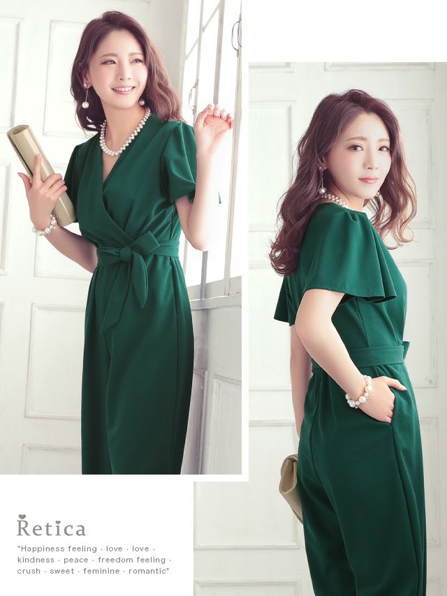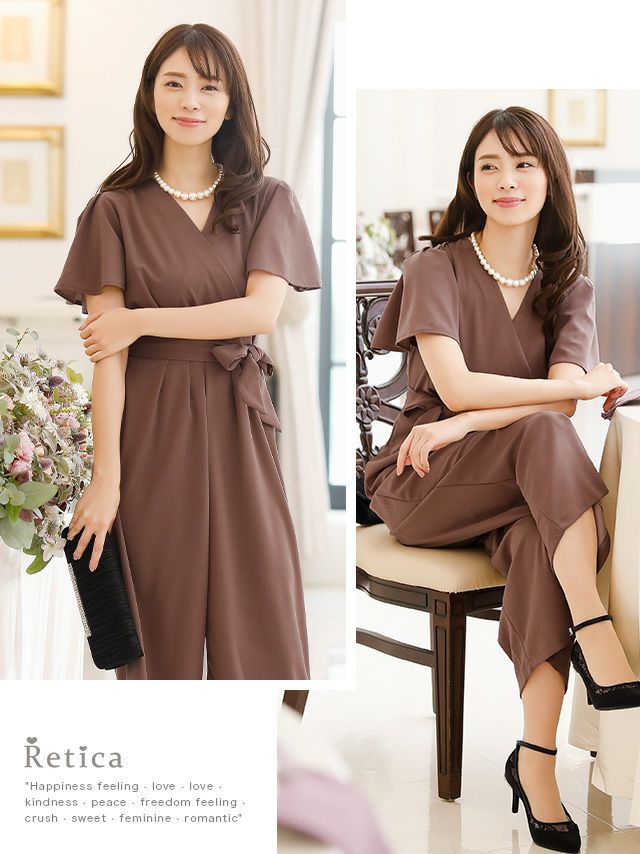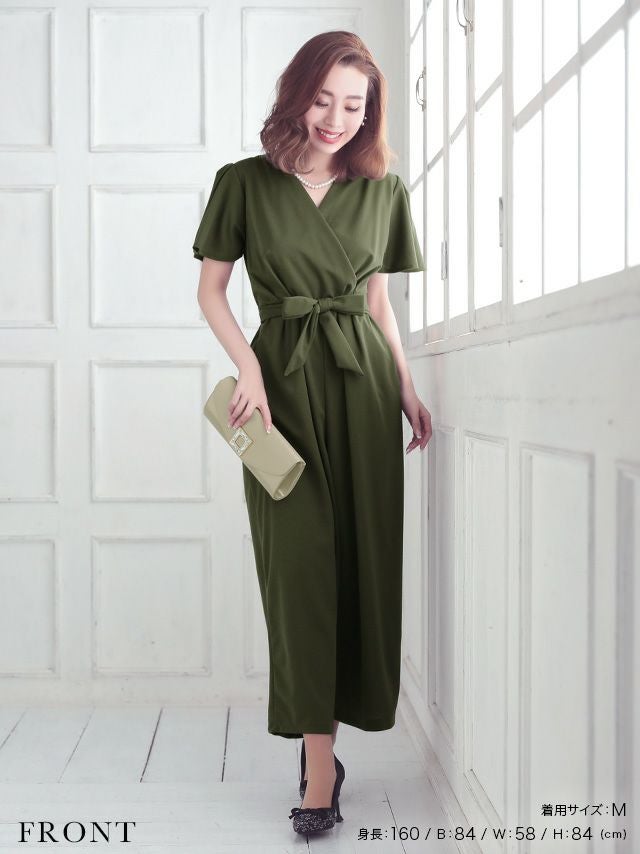 5. スタイルアップカジュアルカシュクールネックワンカラーウエストリボンアンクル丈パンツショートスリーブ結婚式パーティードレス [Retica/レティカ]