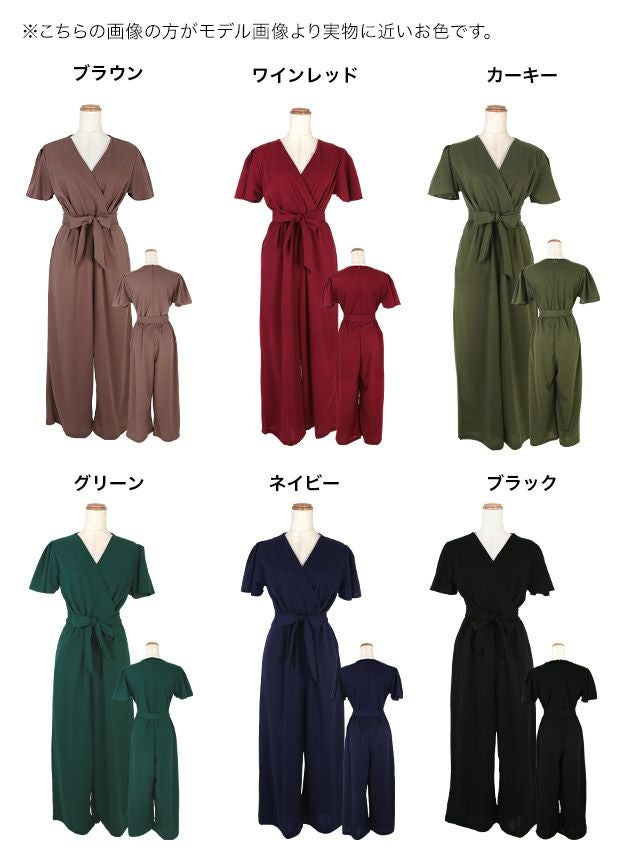スタイルアップカジュアルカシュクールネックワンカラーウエストリボンアンクル丈パンツショートスリーブ結婚式パーティードレス [Retica/レティカ]