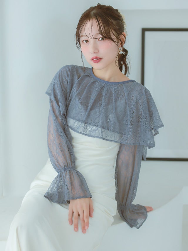 総レースにフリルでフェミニンさをプラスしてくれます