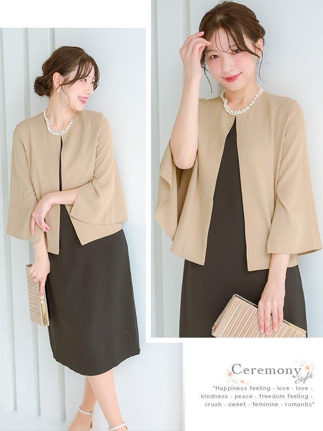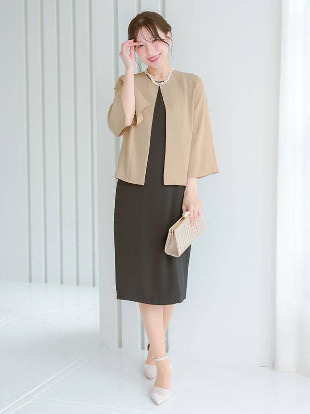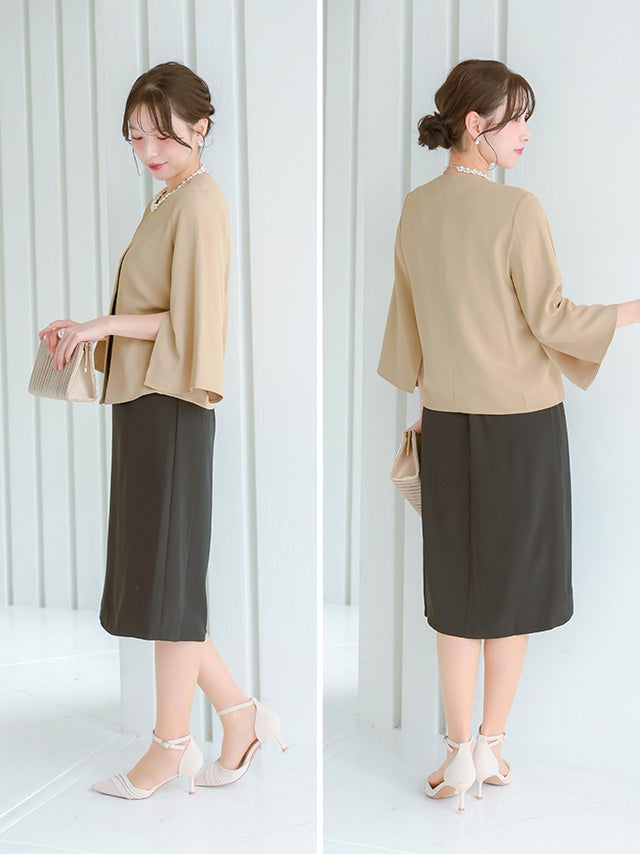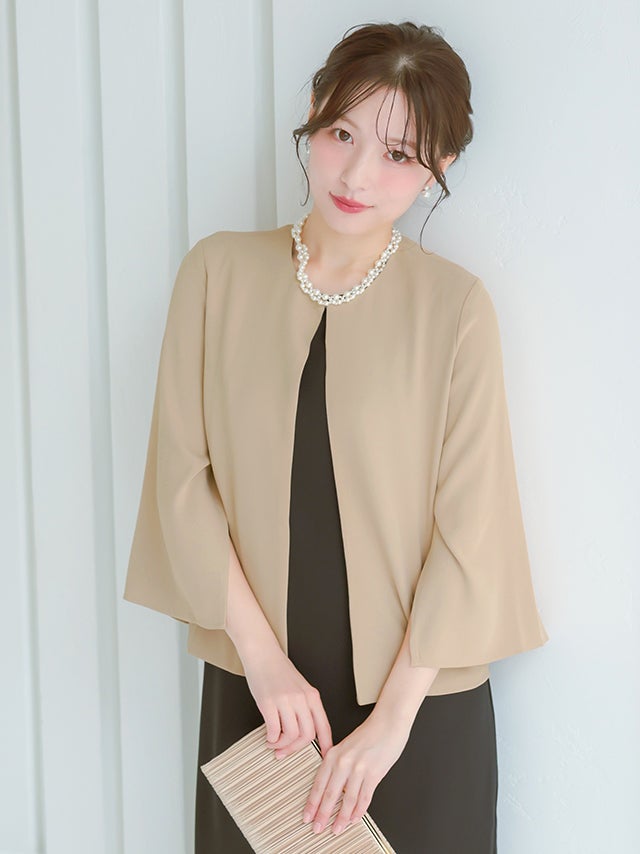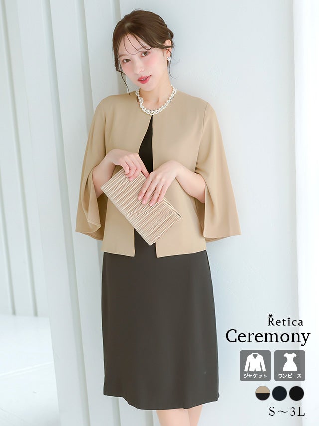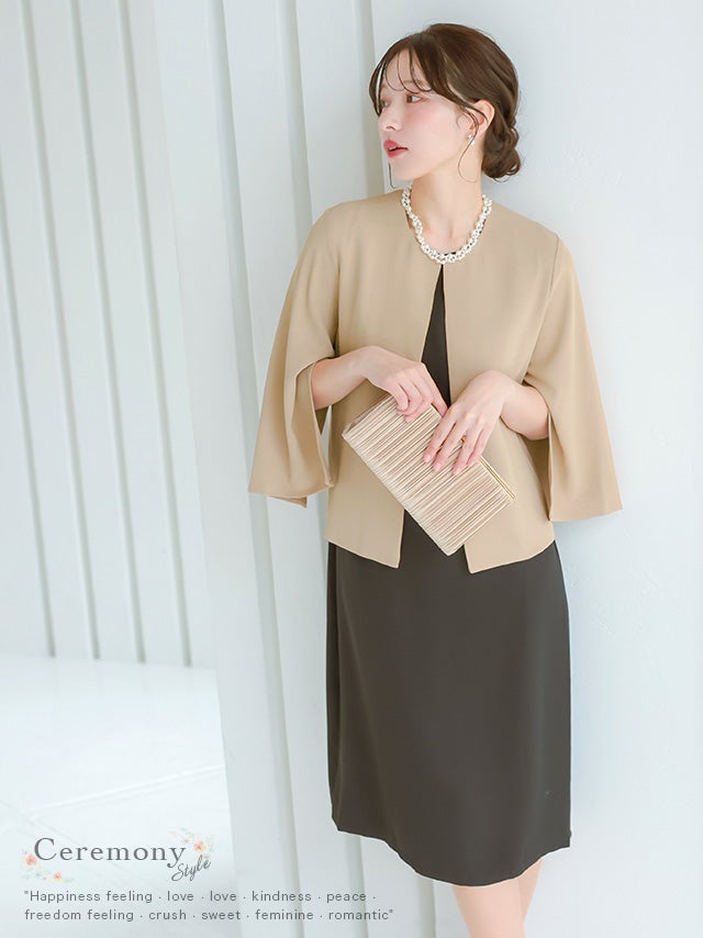 3. [SALE] ノーカラー袖スリットジャケット×ノースリーブロングワンピース セットアップセレモニースーツ(Sサイズ~3Lサイズ)