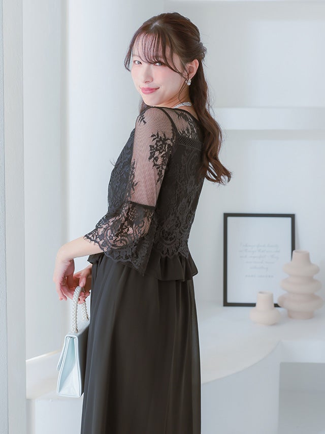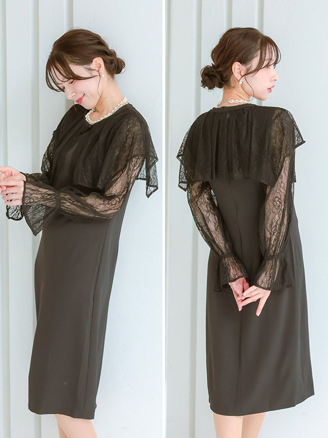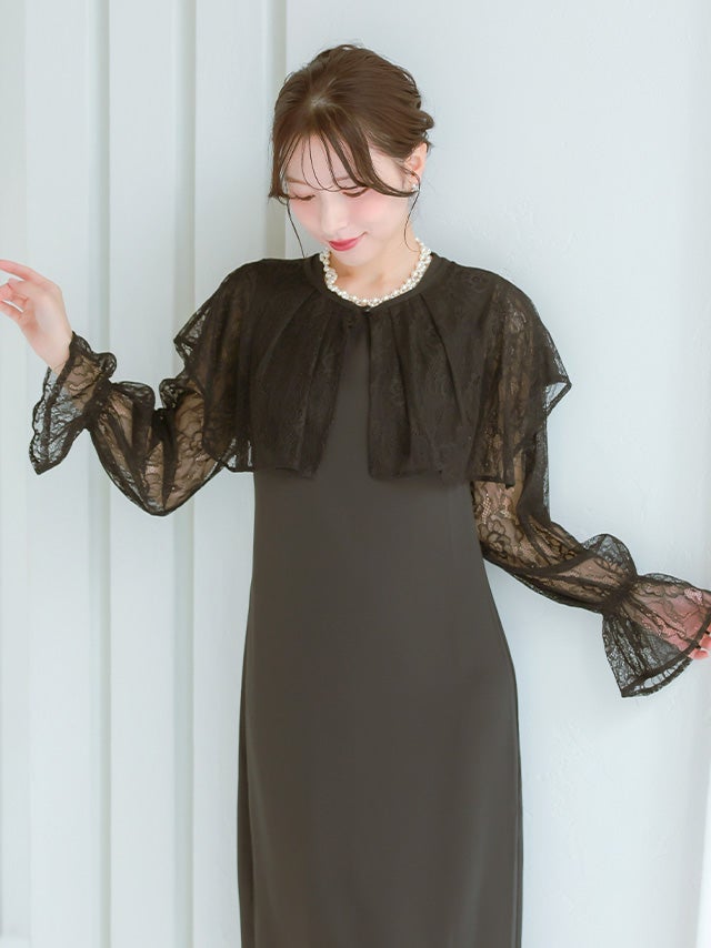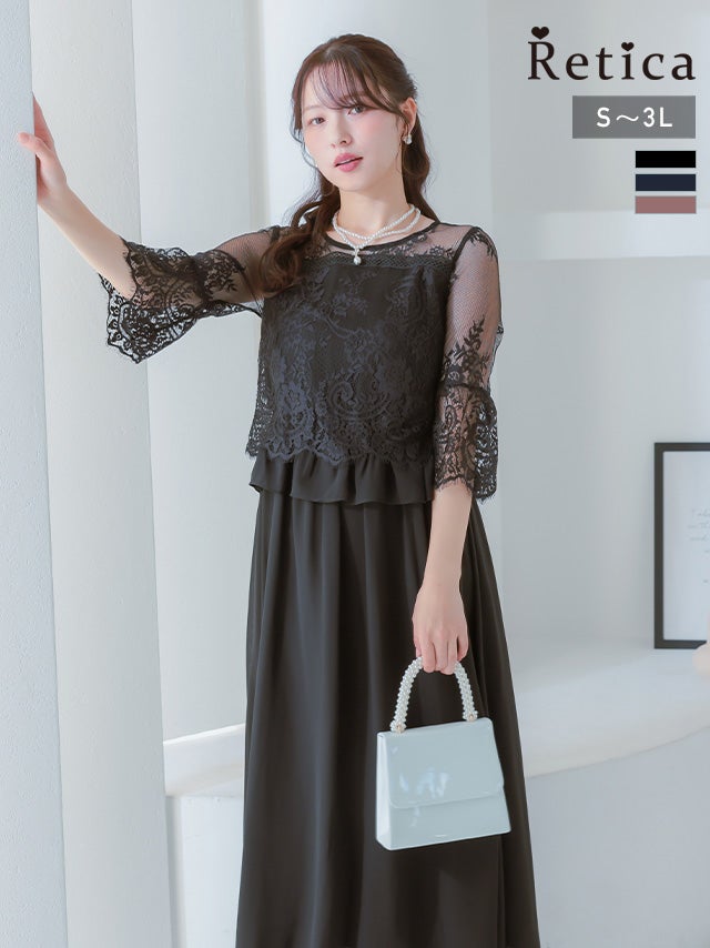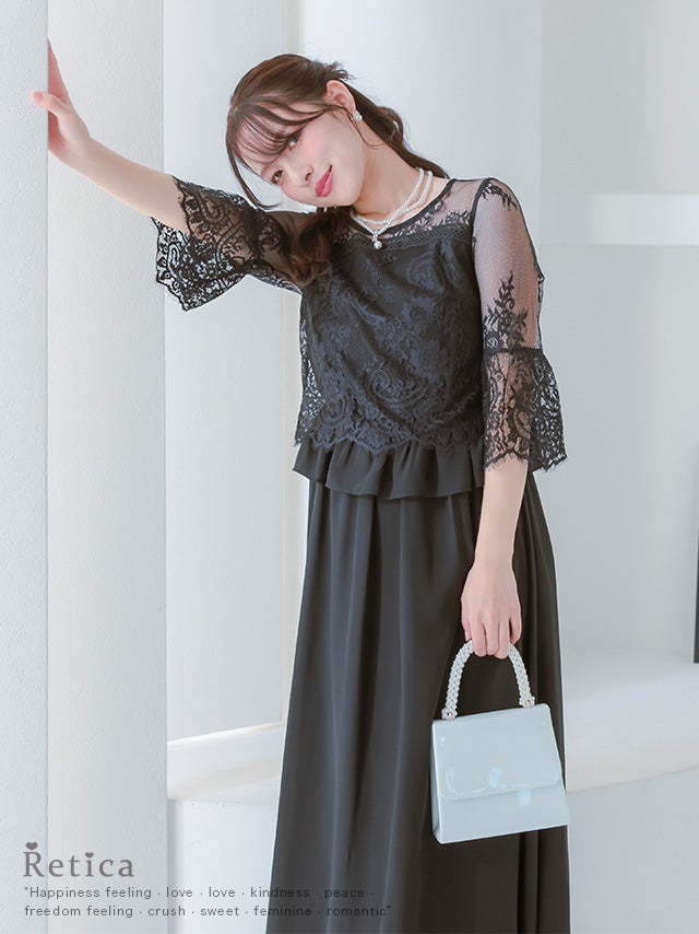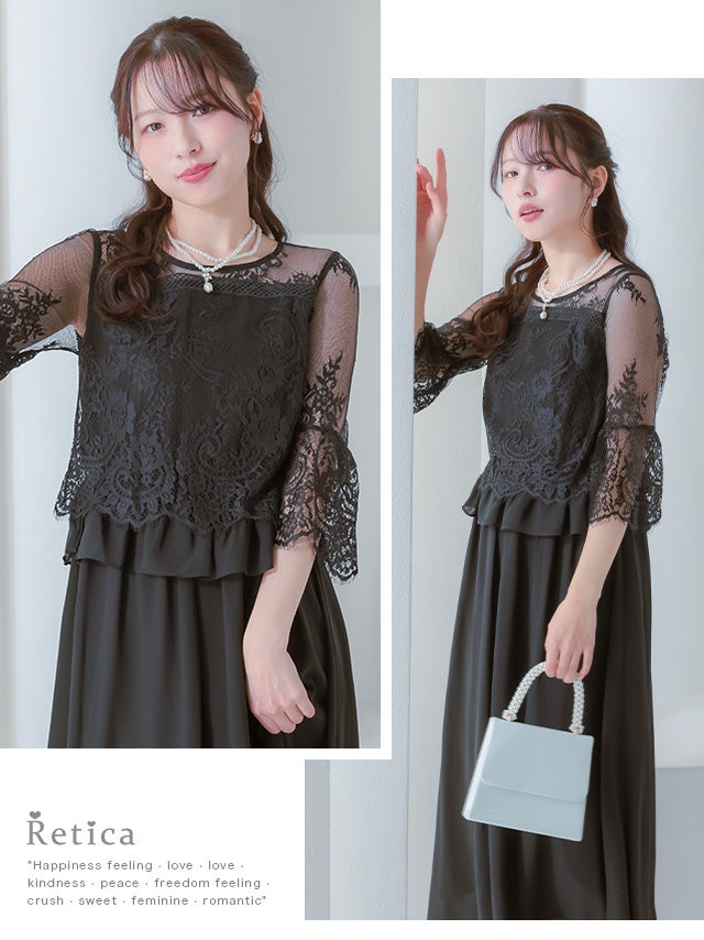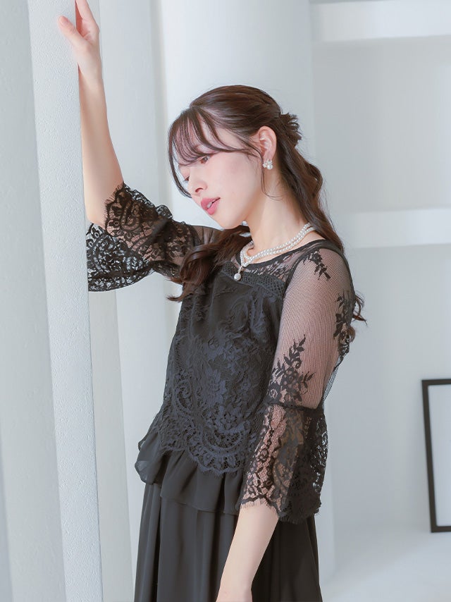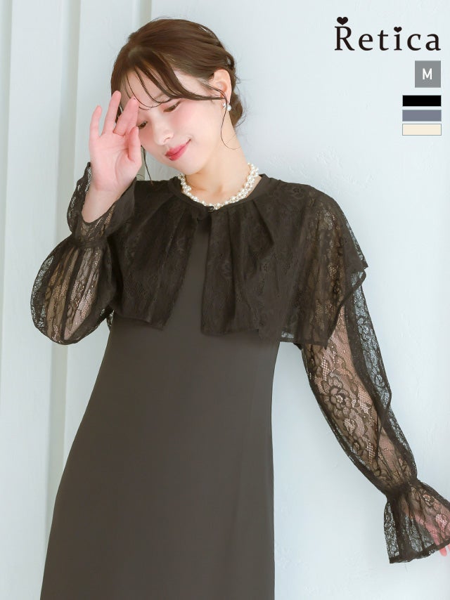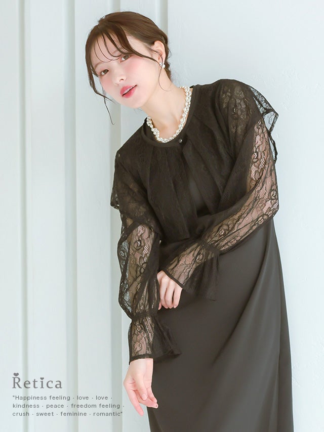 どんなドレスにも合わせやすい♪ [SALE] レース袖切り替えデザイン半袖ショート丈ボレロ [Retica/レティカ]