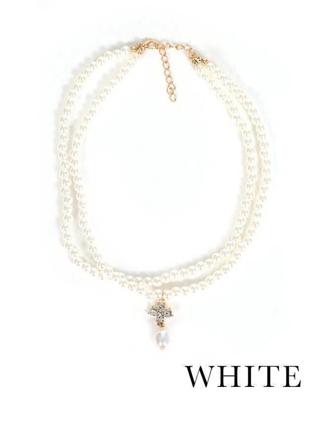 デコルテをより綺麗に美しく♪ 2連ホワイトパールビジューショートネックレス [Retica/レティカ]
