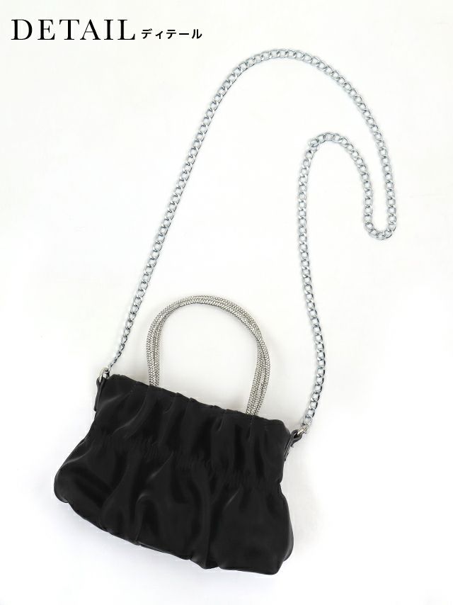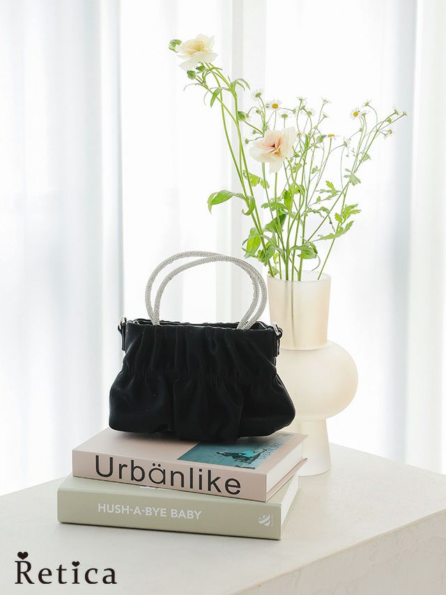 4. ショルダーチェーン付きギャザービジューハンドルミニバッグ [Retica/レティカ]