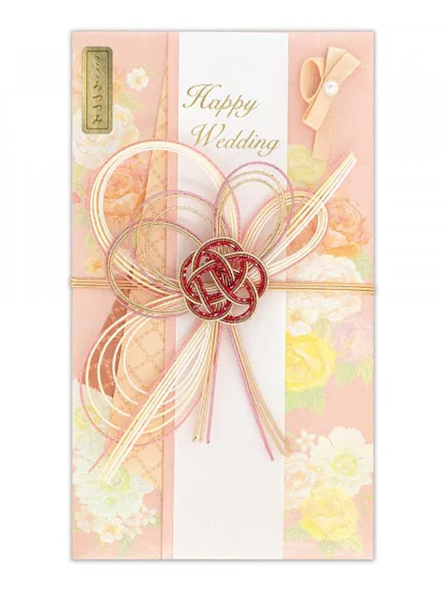 暖かみのあるピンクがかわいい♡ ピンク地に花柄パールリボン付きご祝儀袋 結婚式
