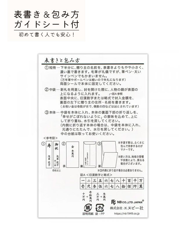 表書き&包み方ガイドシート付きで初めて書く方でも安心◎
