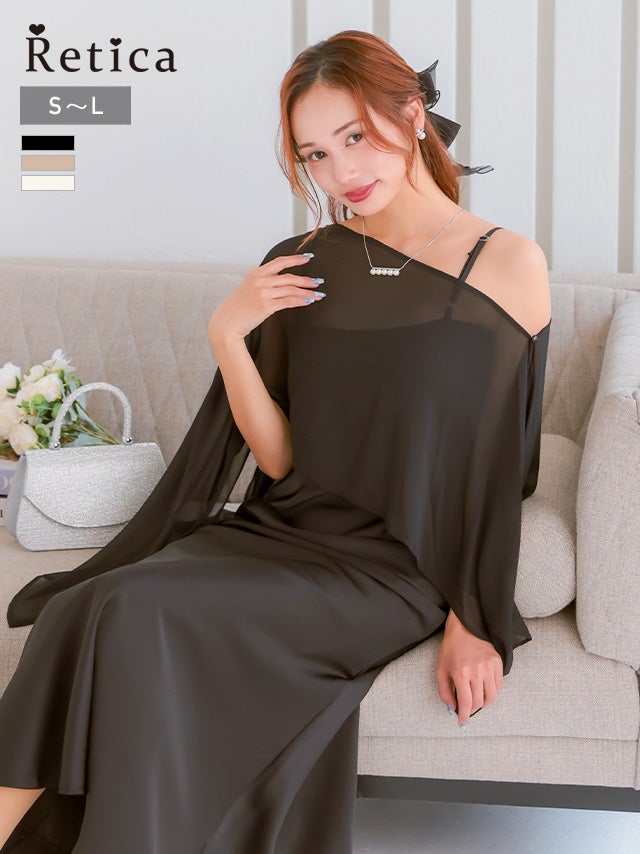 5. シアーケープ×サテンマーメイドキャミワンピースセットアップパーティードレス(Sサイズ~Lサイズ)