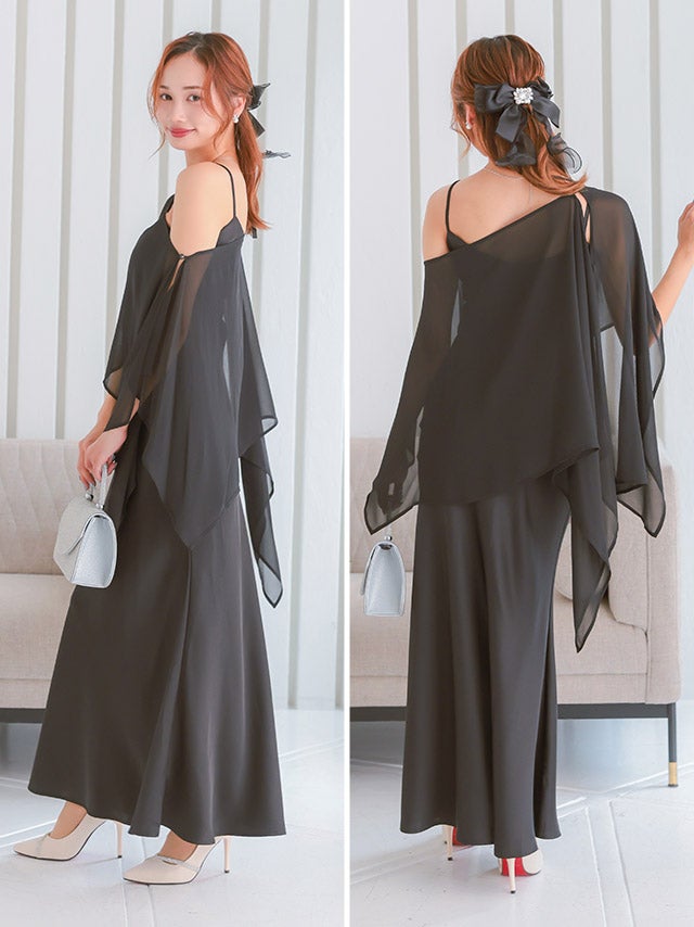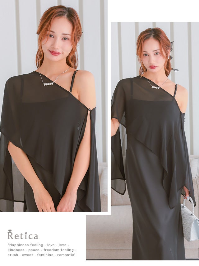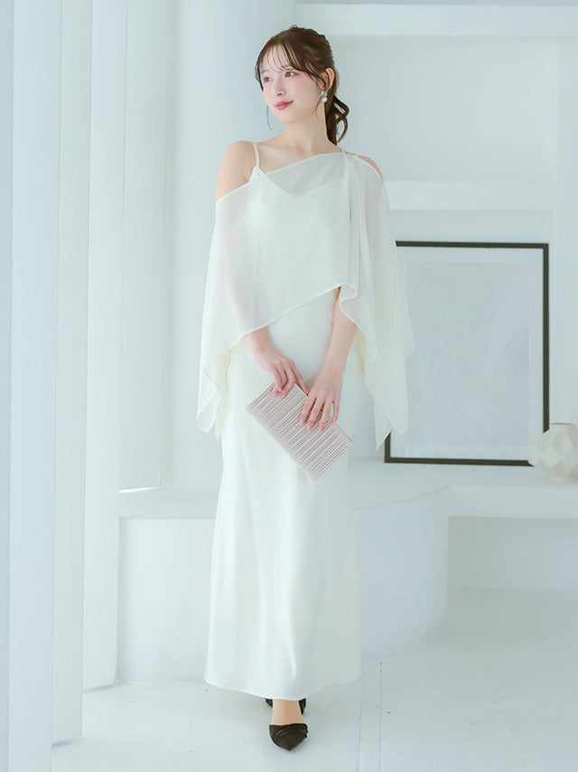 上品な光沢のあるワンピースがシンプルな美しさを引き立てます。
