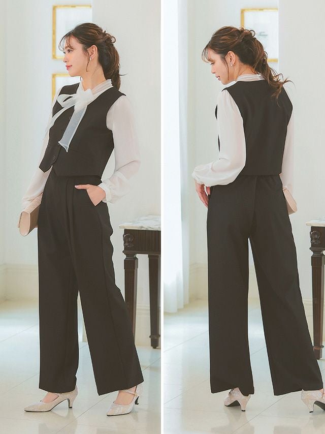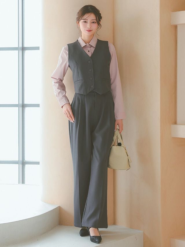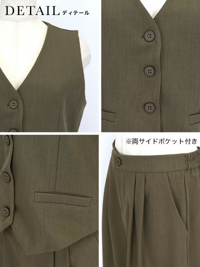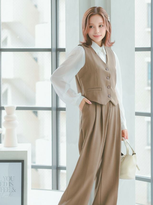 タック入りのワイドパンツで