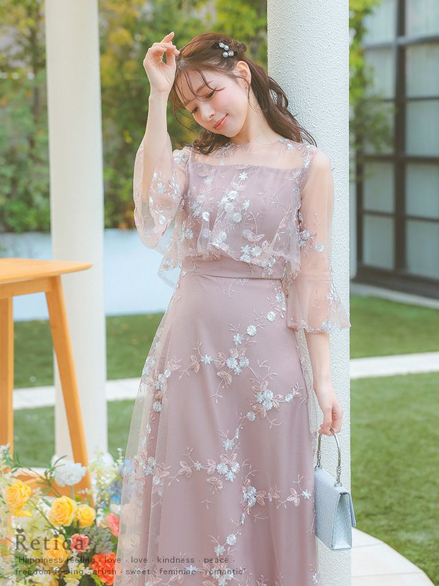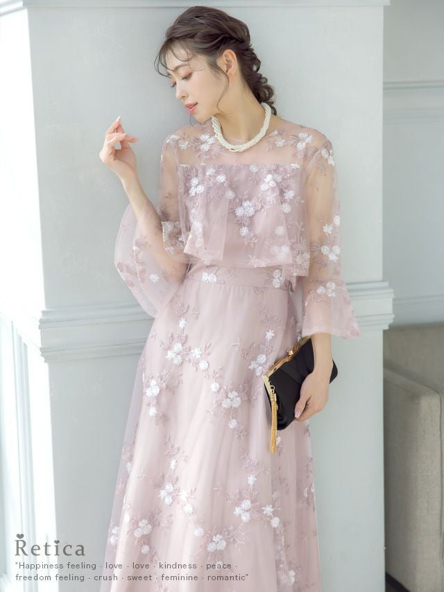繊細なフラワー刺繍が