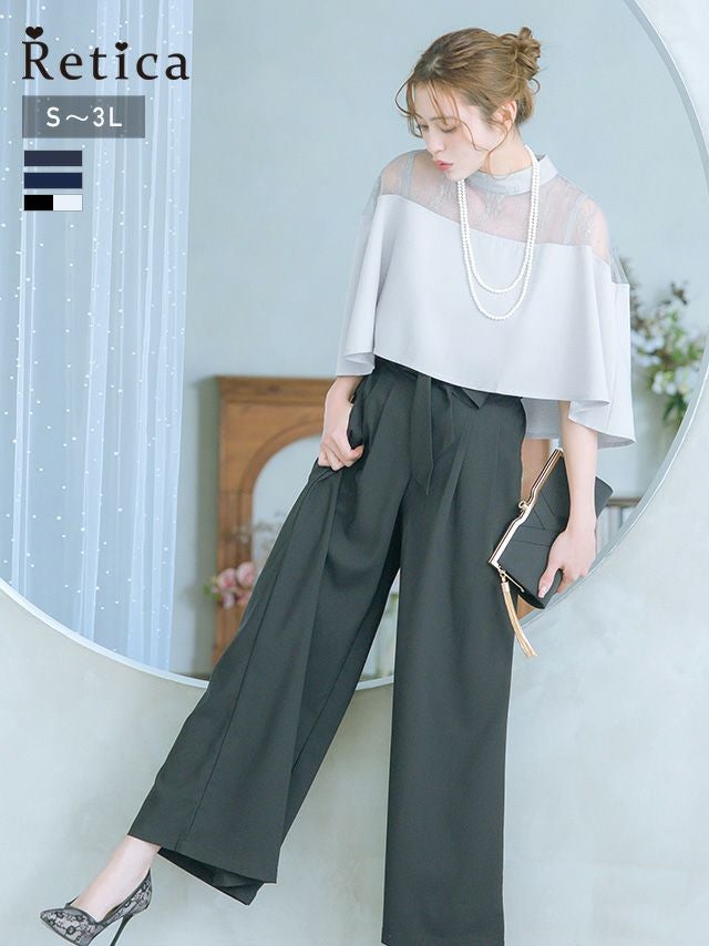 デコルテのレース切り替えで女性らしい透け感♪