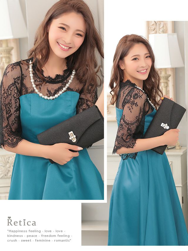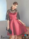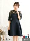 ブラックレース切り替えサテン素材フレア五分袖膝上結婚式パーティードレス [Retica/レティカ]