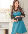 3. ブラックレース切り替えサテン素材フレア五分袖膝上結婚式パーティードレス [Retica/レティカ]