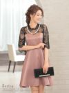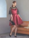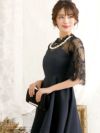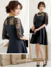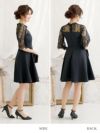 4. ブラックレース切り替えサテン素材フレア五分袖膝上結婚式パーティードレス [Retica/レティカ]