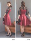 ブラックレース切り替えサテン素材フレアミニ丈ハーフスリーブ結婚式パーティードレスのカラーバリエーション画像