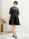 刺ブラックレース切り替えサテン素材フレアミニ丈ハーフスリーブ結婚式パーティードレスのイメージ画像1