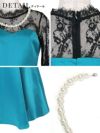 ブラックレース切り替えサテン素材フレアミニ丈ハーフスリーブ結婚式パーティードレスの商品詳細 ディテール2