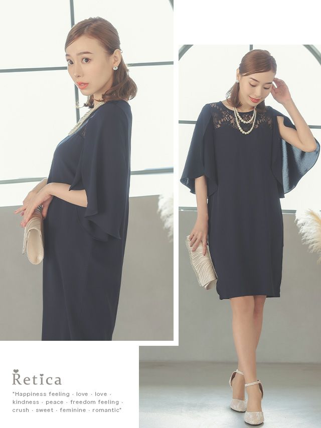 4. フラワーレースデザイン膝上七分袖ペタルスリーブ結婚式パーティードレス [Retica/レティカ]