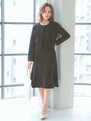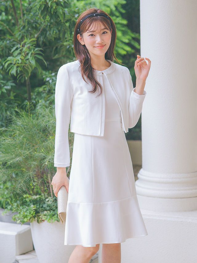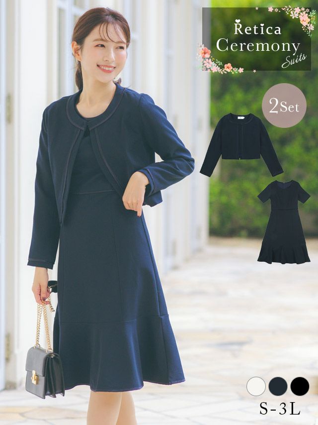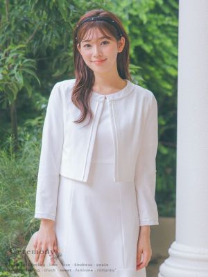 3. SALE ノーカラーショート丈ジャケットワンカラー膝下ワンピーススタイルセレモニースーツ [Retica/レティカ]