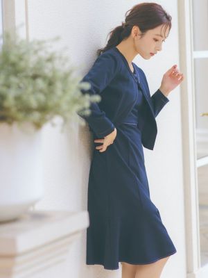 5. SALE ノーカラーショート丈ジャケットワンカラー膝下ワンピーススタイルセレモニースーツ [Retica/レティカ]