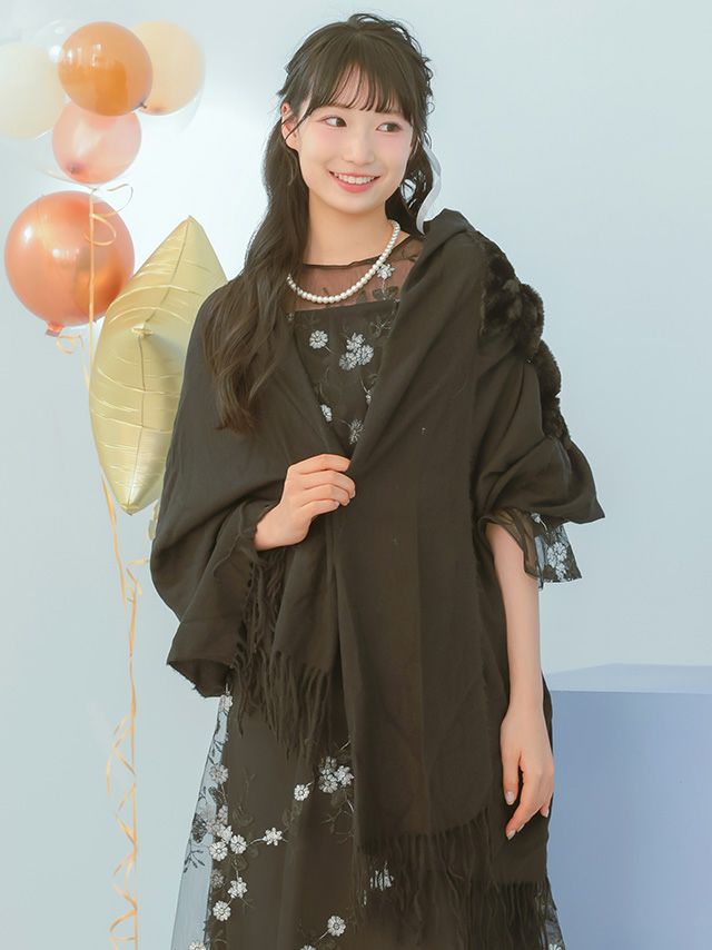 [SALE] ふわふわフェイクファー付きフリンジショール (フリーサイズ)