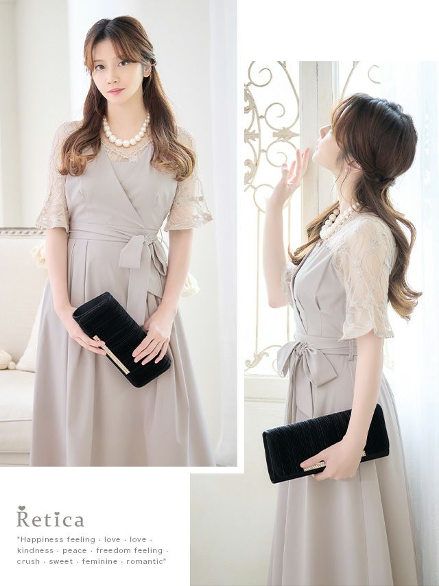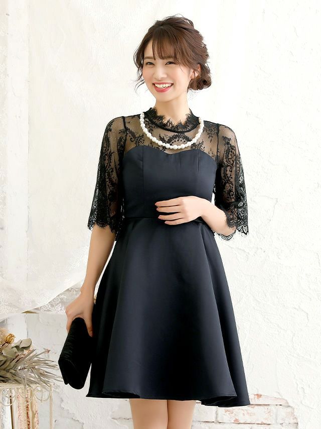 黒っぽいパーティードレスは小物やレース生地のものを選んで華やかに!
