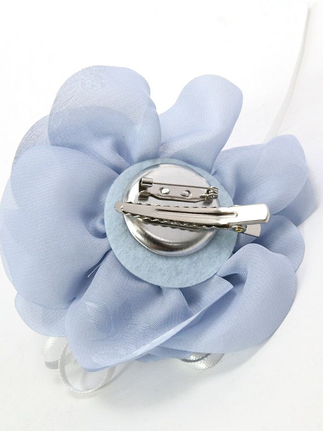 ブライズメイドにおすすめ♪ 髪飾りネットレースパールシフォンフラワー (ホワイト/ピンク/ブルー) [Retica/レティカ]