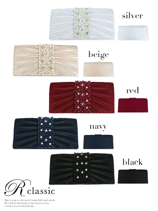 持つだけで高級感のある装いに♪ 2wayプリーツセンターパールビジューパーティーバッグ [Retica/レティカ]