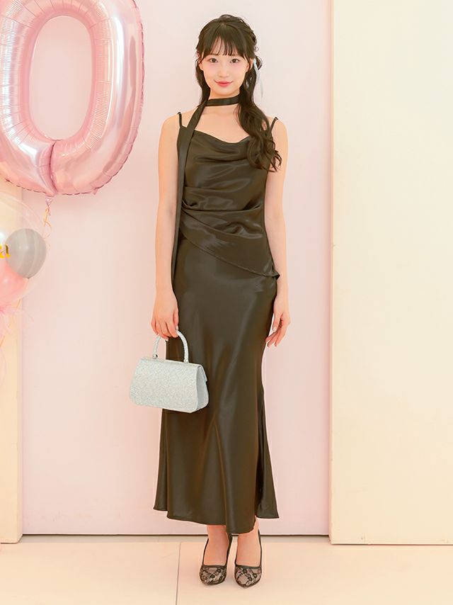 上品な艶感のある生地が魅力のロングドレス