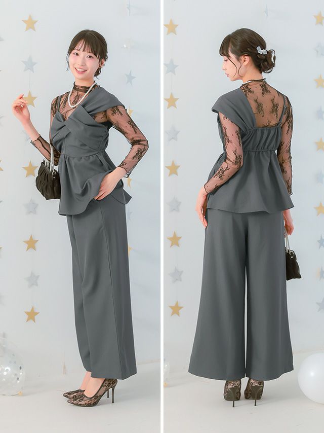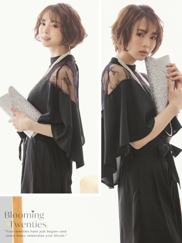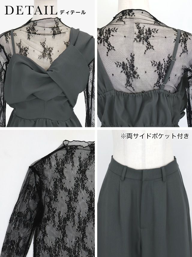 他の画像を見る 2026年新作★透け感で大人っぽさをプラス♪ [SALE] 透けレースケープ風デザインワイドパンツパーティードレス(Sサイズ~3Lサイズ) ¥ 15,180 ¥ 11,880 税込 詳細を見る お気に入りに追加