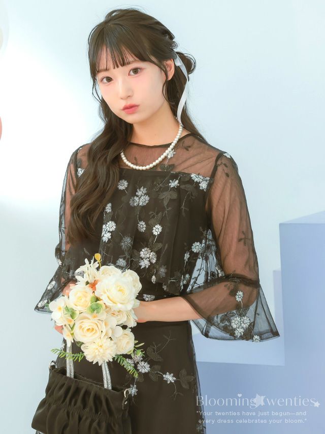 他の画像を見る 2026年新作★上品な大人可愛いドレス♪ [SALE] シースルー花柄刺繍シフォンフレア袖ロングパーティードレス(Sサイズ~3Lサイズ) ¥ 14,300 ¥ 10,780 税込 詳細を見る お気に入りに追加