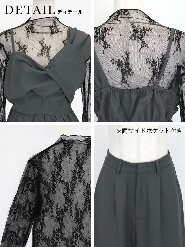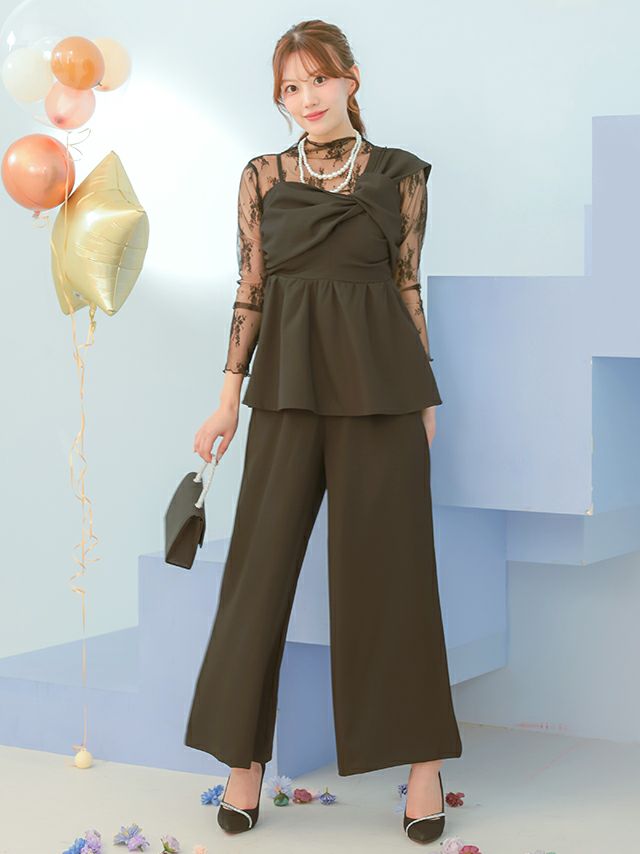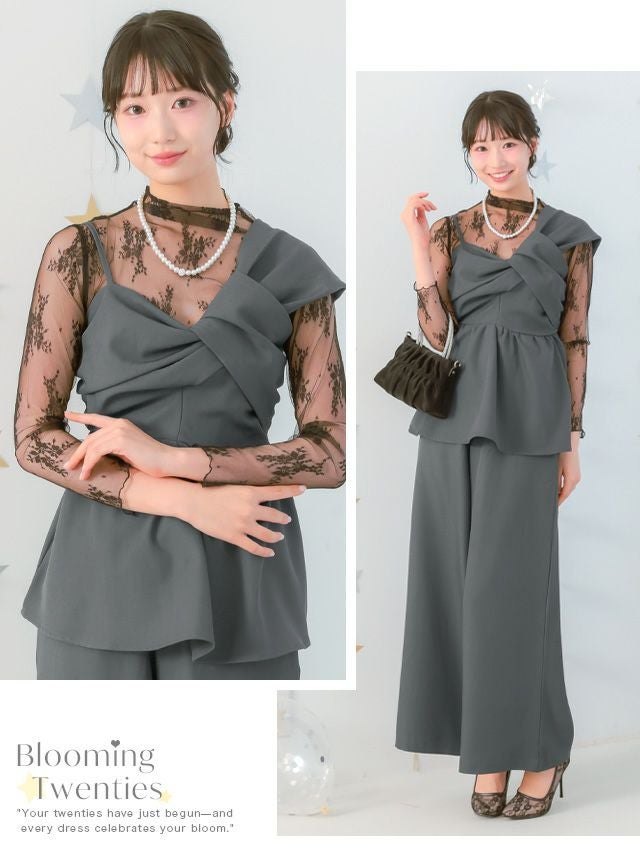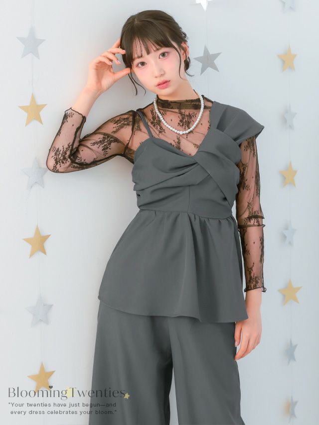 アシンメトリークロスデザインペプラムセットアップパンツドレス(Sサイズ~3Lサイズ)