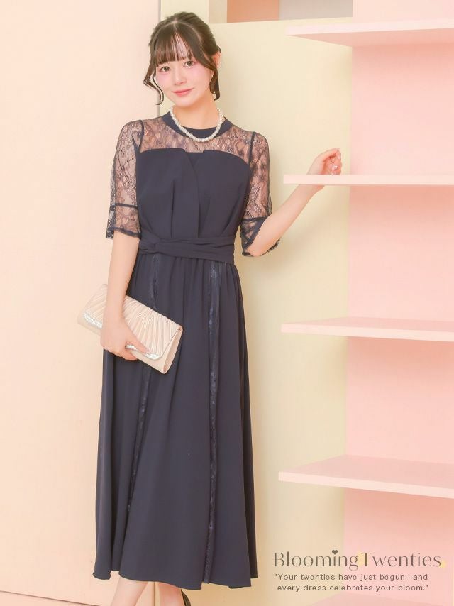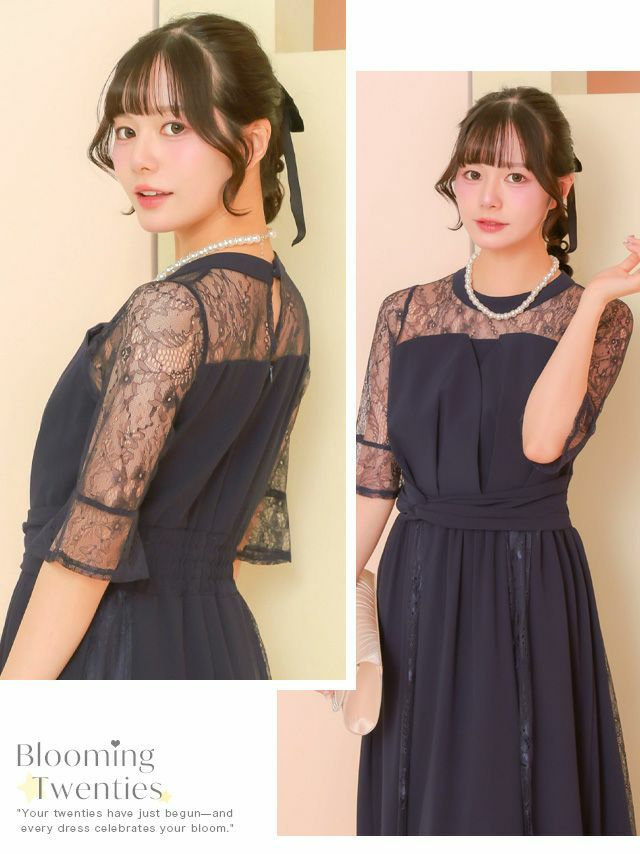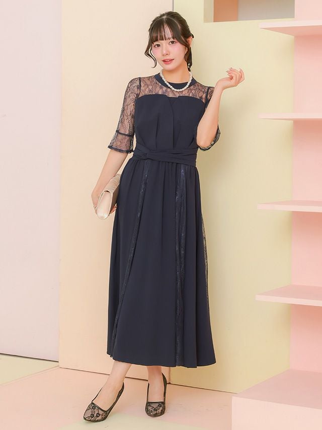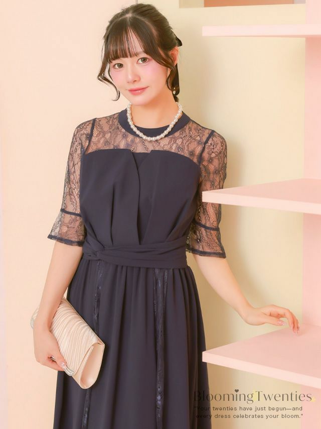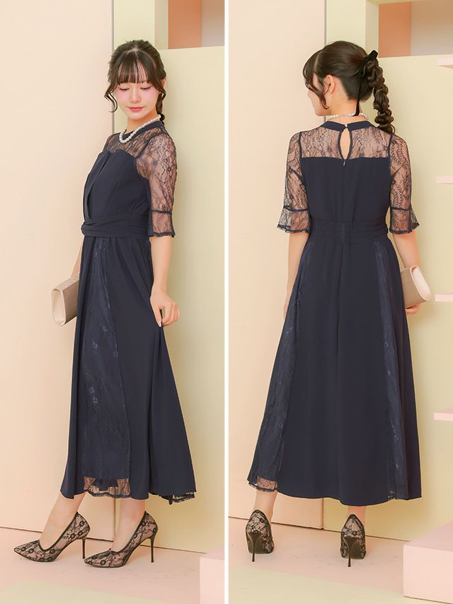 ネイビーが大人っぽさを引き立ててくれるパーティードレス