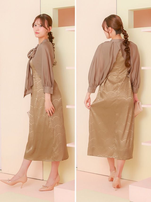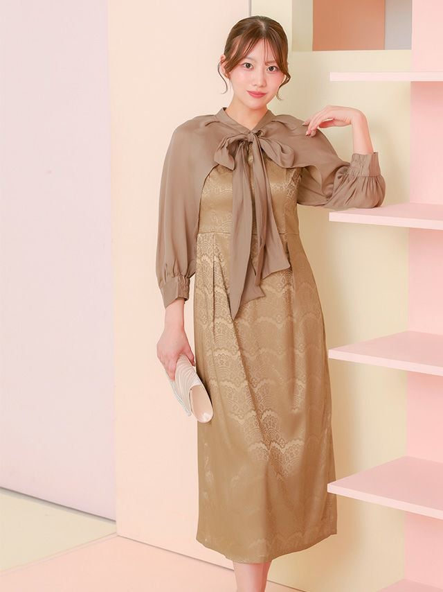 中央のリボンが印象的なセパレートタイプのロングドレス
