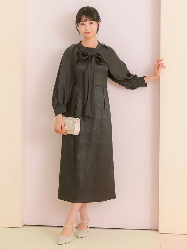 中央のリボンがアクセントのセパレートタイプのロングドレス
