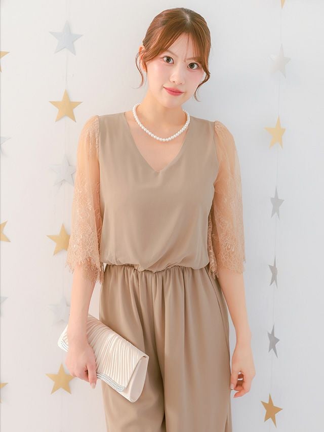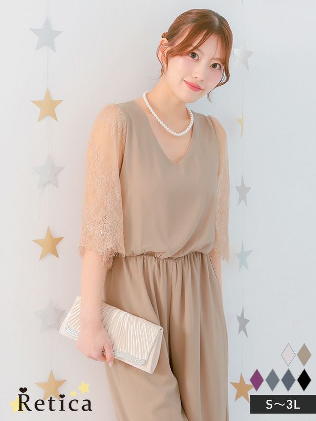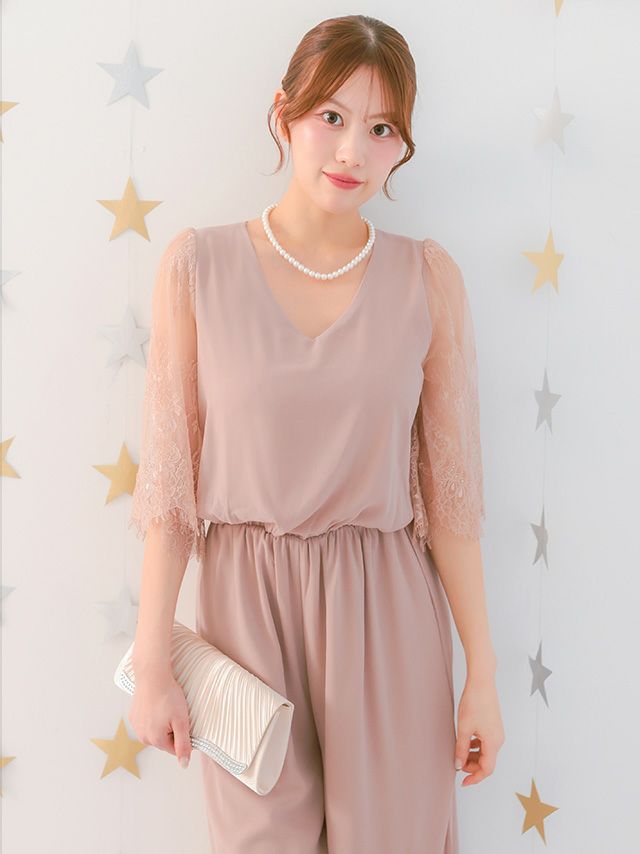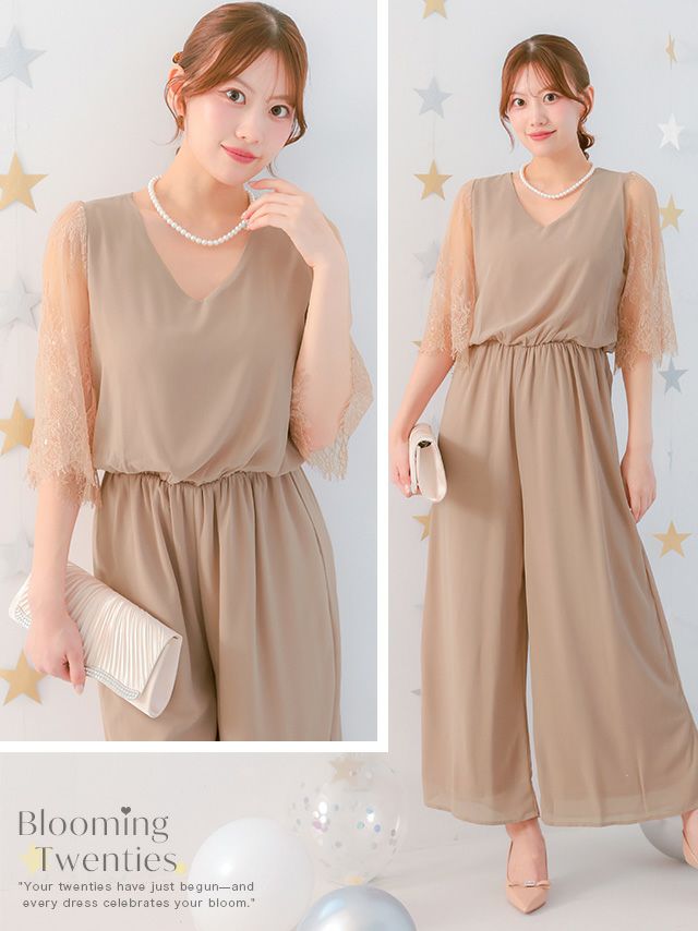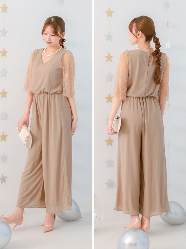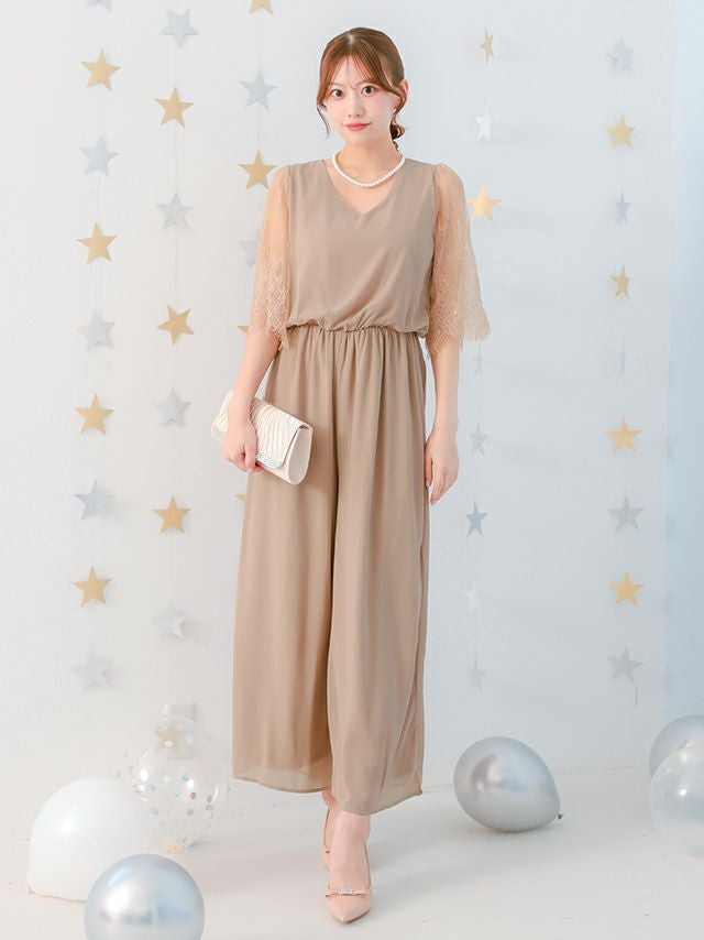 上品なオールインワンタイプのパンツドレス。