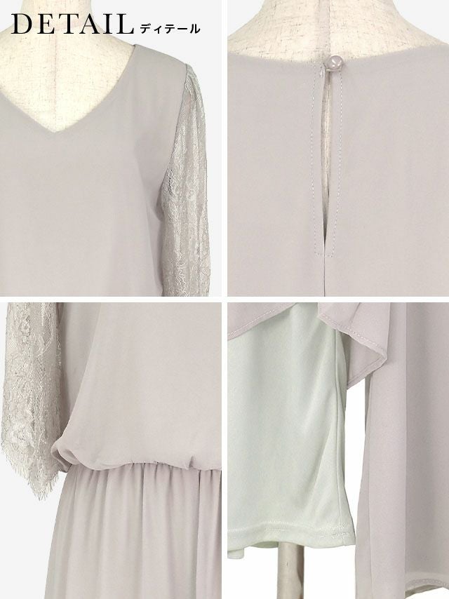 Vネックと五分袖のレースデザインが