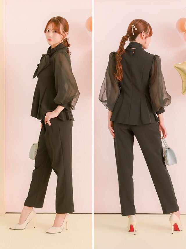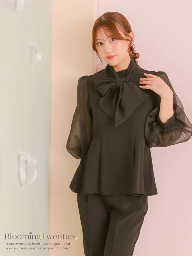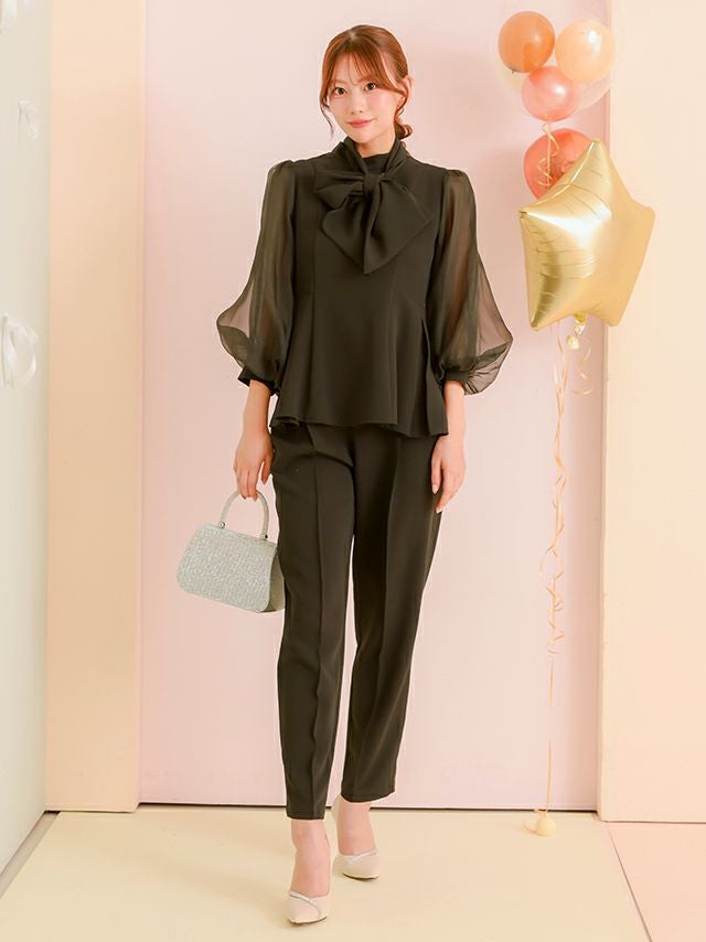取り外し可能ボウタイリボン付きトップスとパンツのセットアップ♡