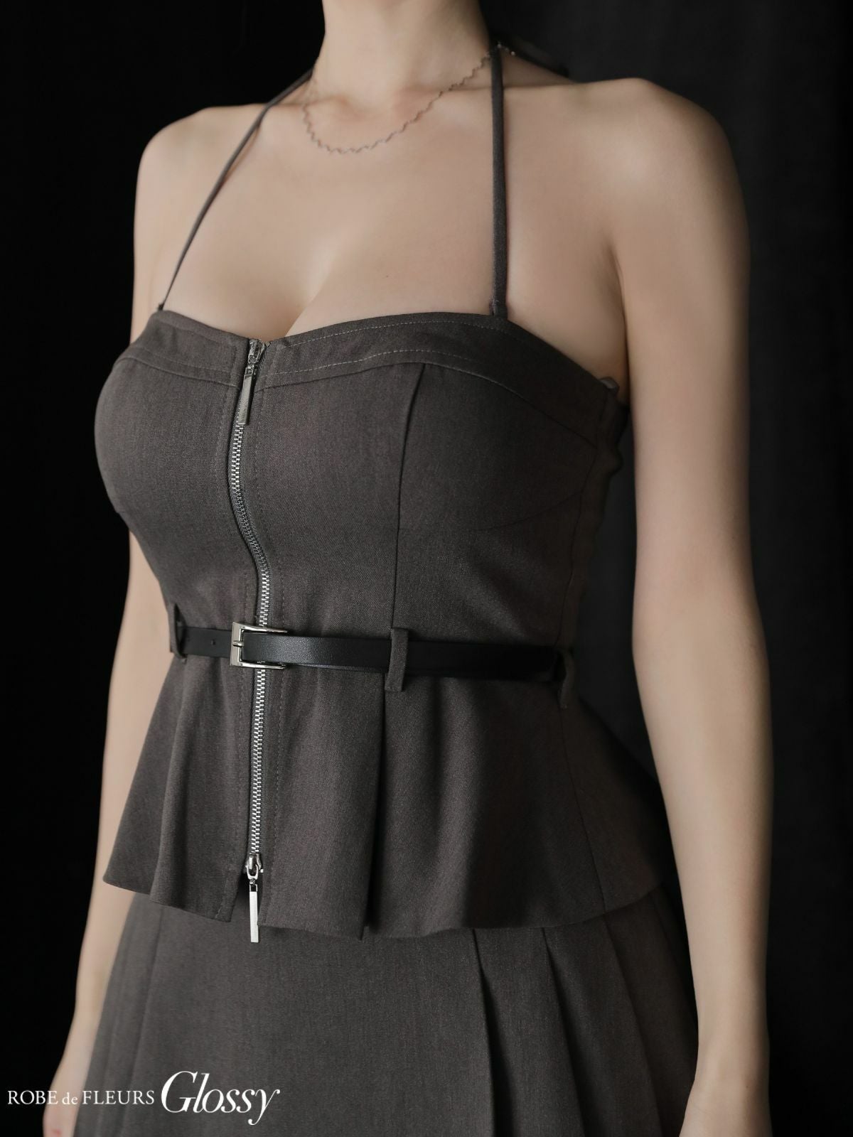 他の画像を見る ベルト×ペプラムで細見え効果抜群♡ [ROBEdeFLEURSGlossy/ローブドフルールグロッシー] 高級 ブランド Aラインミニドレス 谷間 セットアップ ホルターネック ベア 2way ウエストベルト ペプラム ジップ ¥ 29,480 税込 お気に入りに追加