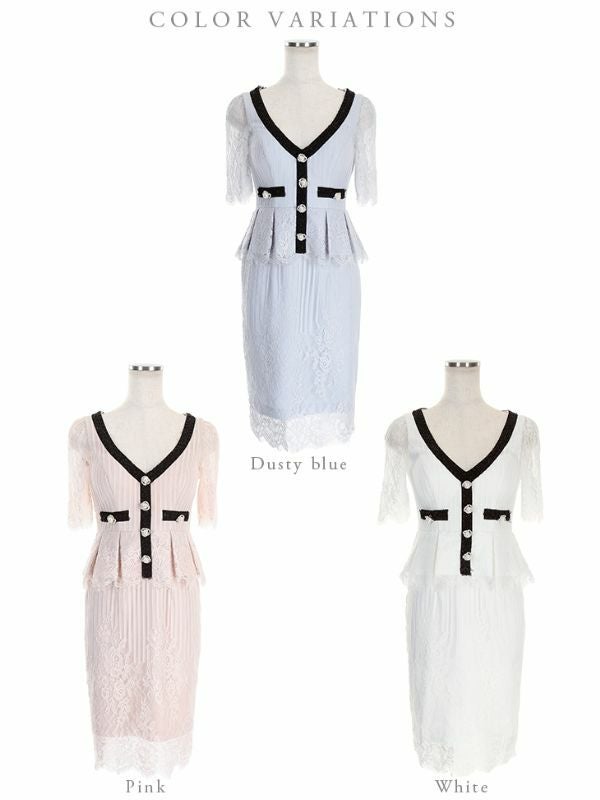 5. [DEA.byROBEdeFLEURS/ディアバイローブドフルール] 高級スーツ風デザインパイピングパールボタンペプラム半袖タイトミニドレス