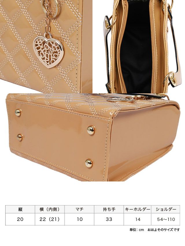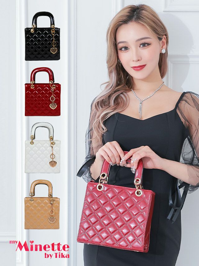 デイリー使いもできちゃう♪ ハートチャーム付きエナメルミニハンドバッグ