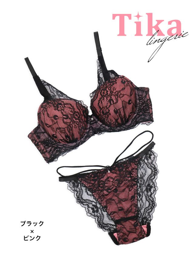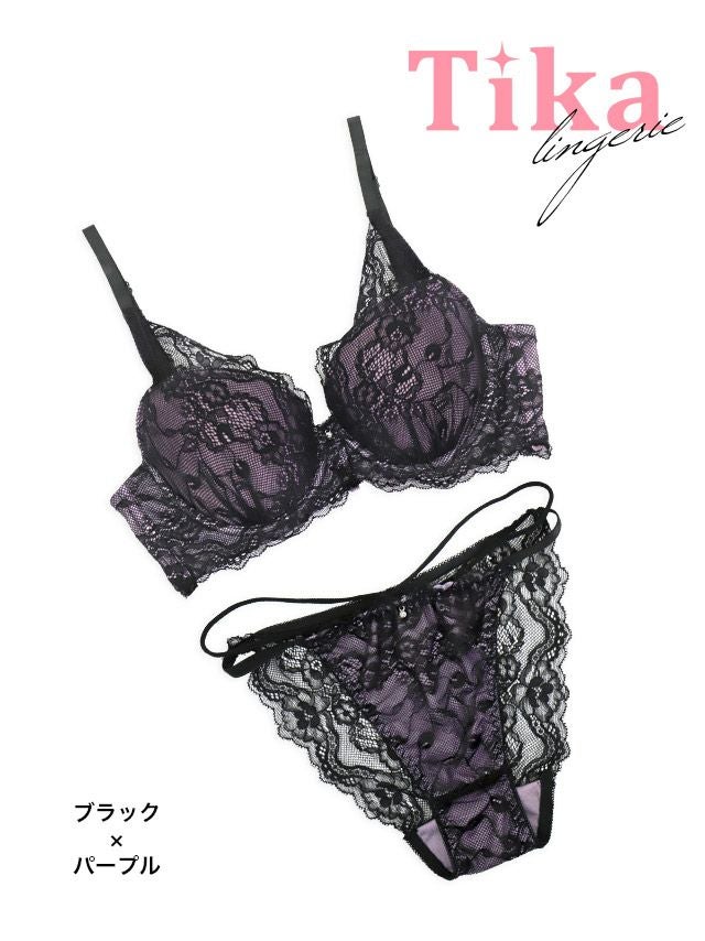 ブラックフラワーレーストッピングビジュー脇高カップブラジャー&ショーツ2点セットのカラー詳細
