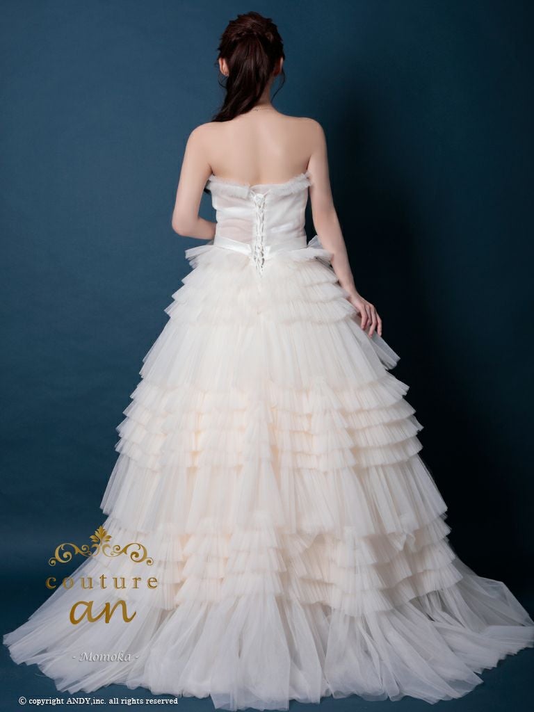 4. [couture an/クチュールアン] 高級 バースデー ベアトップ 段チュール リボン バストカット Aラインロングドレス