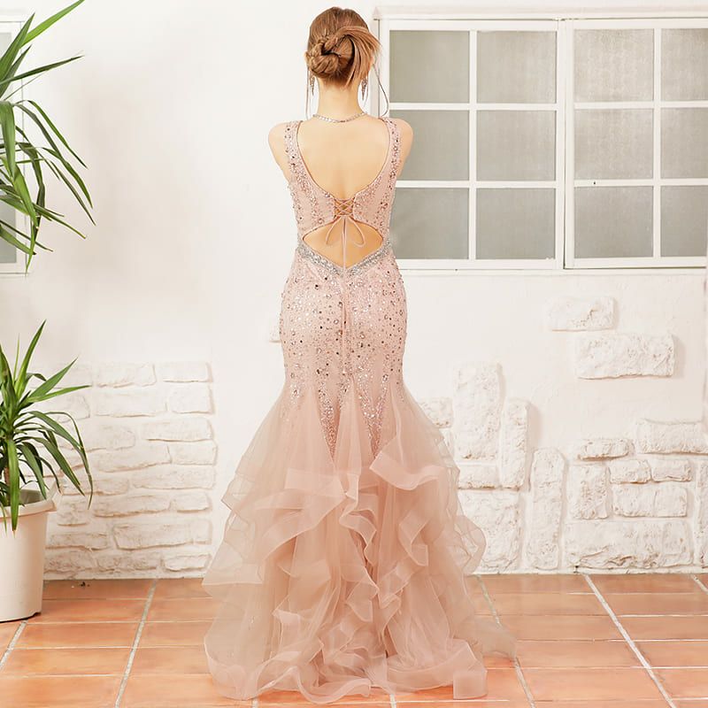 4. [Angel-R PREMIUM/エンジェルアールプレミアム] 高級 バースデーマーメイドノースリーブ&ビジューデザインタイトロングドレス
