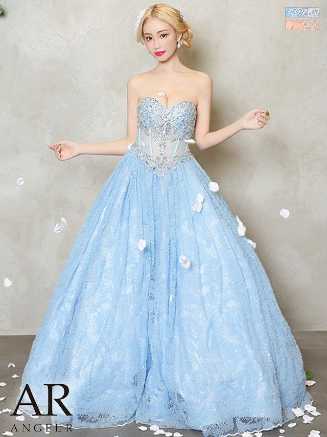[Angel-R/エンジェルアール] 高級オフショルダーフラワー刺繍ビジューウエストシースルーバースデーAラインロングドレス